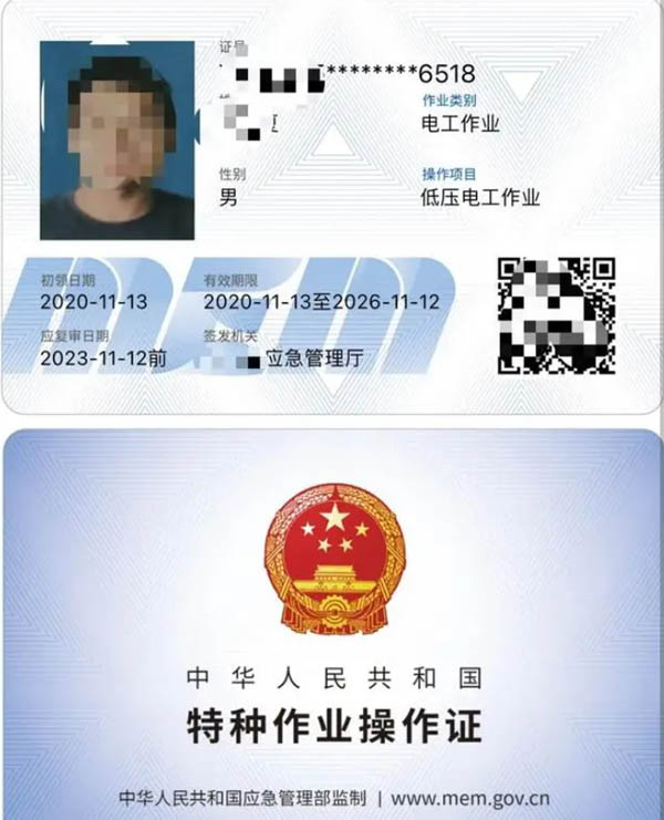 一、應急管理廳(原安監(jiān)局)特種操作證俗稱“”上崗證”,證書每3年進行一次復審、6年換證。常見的低壓電工和高壓電工都是由應急管理廳頒發(fā)的。